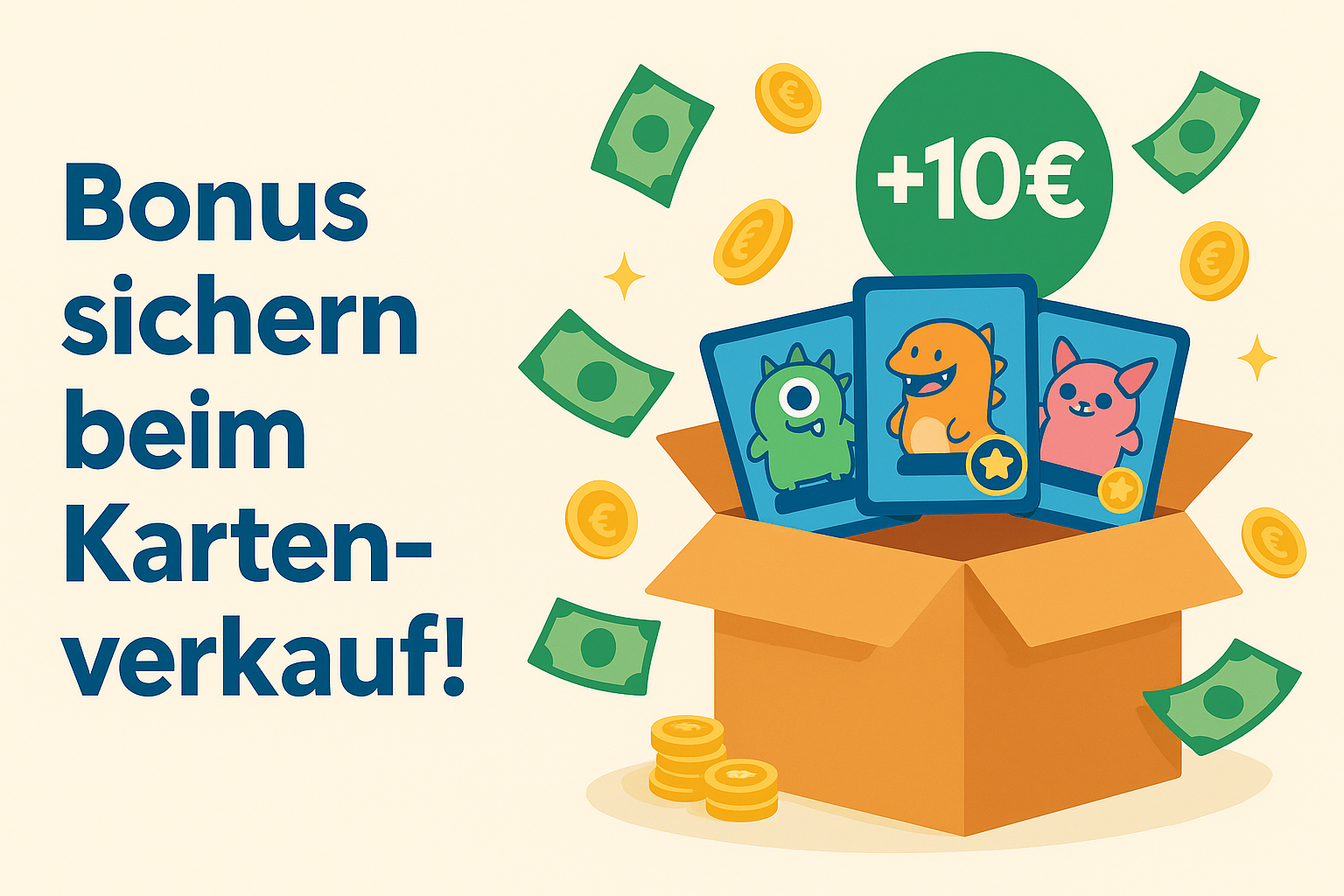 Verpacke deine Karten sicher und sende sie an uns. Ab 30 € Ankaufswert übernehmen wir die Versandkosten – du bekommst ein Versandetikett von uns.