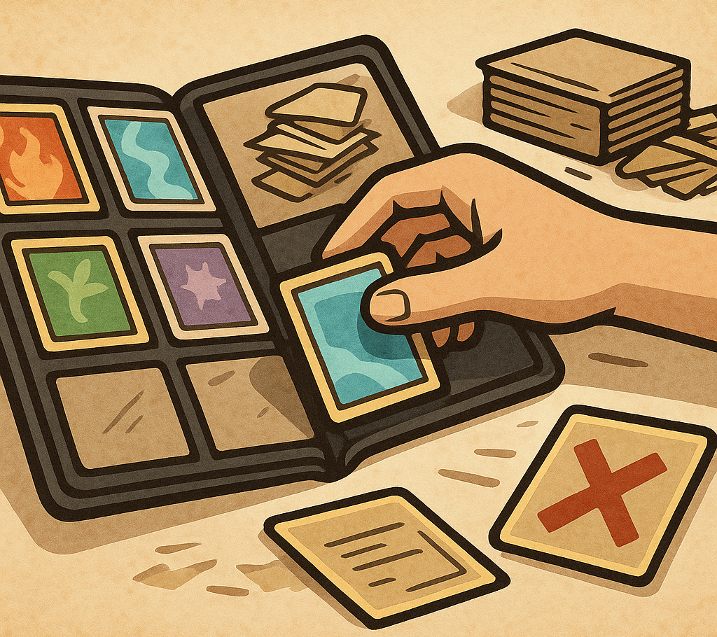 Du wählst auf unserer Website das Set und die Karten aus, die du verkaufen möchtest. Diese landen im Verkaufskorb. Nach Abschluss erhältst du eine E-Mail mit einem Formular. Danach sendest du uns die Karten zu, wir prüfen sie und machen dir ein abschließendes Angebot.